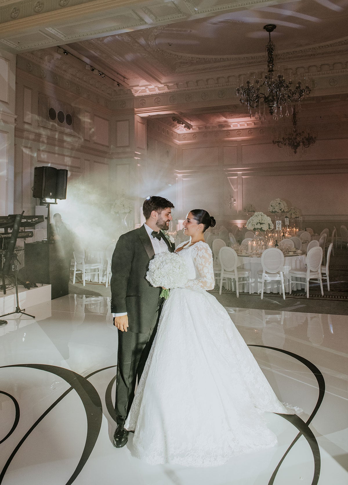 Elena chose a custom Josephine Scott gown