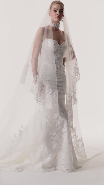 The Isabel Gown is a romantic, figure-flattering silhouette crafted for timeless elegance. A soft sweetheart neckline and fitted strapless bodice highlight the décolletage, while intricate French lace overlays delicate Chantilly lace, creating depth and texture. The basque waist subtly cinches the figure, blending classic sophistication with modern refinement. Isabel is perfect for brides seeking a gown that is both graceful and effortlessly enchanting.